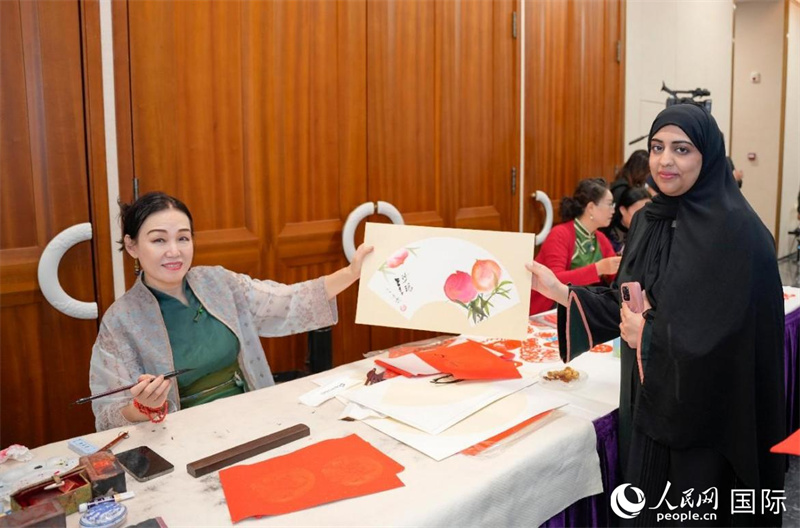 中国书法体验。人民网 塔里克·易卜拉欣摄