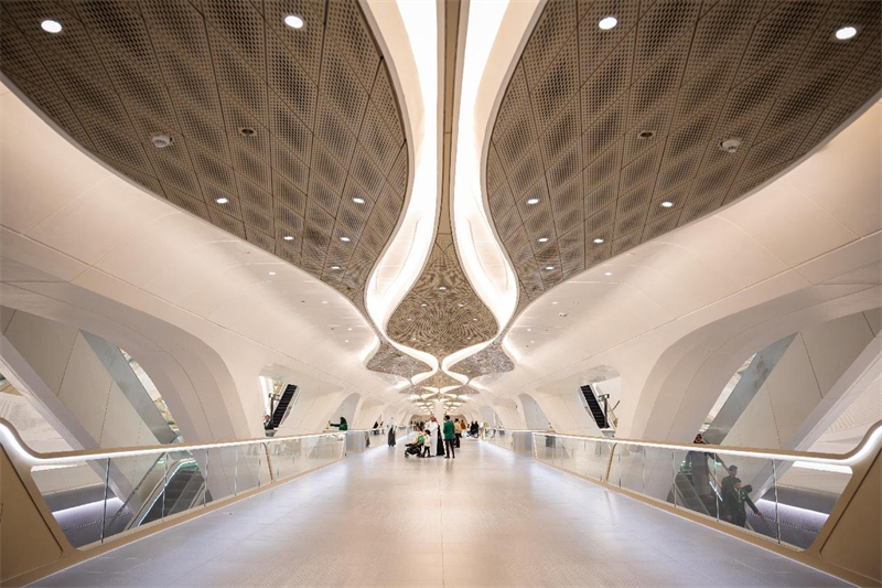 利雅得阿卜杜拉国王金融区地铁站一景。利雅得地铁运营方供图