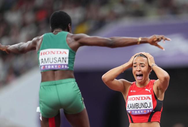 9月15日,2025年世界田径锦标赛女子100米栏决赛在日本东京举行。瑞士选手坎邦吉冲过终点,夺得冠军。赛后,她与亚军尼日利亚选手托比以及季军美国选手斯塔克一同庆祝胜利。
