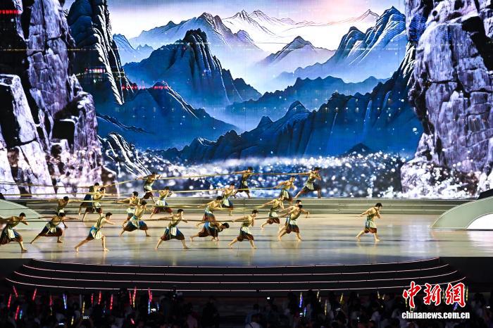 9月18日晚,2025世界大河歌会在长江之畔的重庆市万州区举行。作为2025长江文明论坛重要活动之一,本届大河歌会以“沉浸式互动+国际化表达”为核心,采用开放式舞台设计,将江面游轮、沿岸景观纳入表演空间,来自国内外的知名艺术家通过大型歌舞、川剧、交响乐等形式,展现大河文明的深厚底蕴与时代风采。图为歌舞表演《千年纤夫潮》。中新社记者 何蓬磊 摄