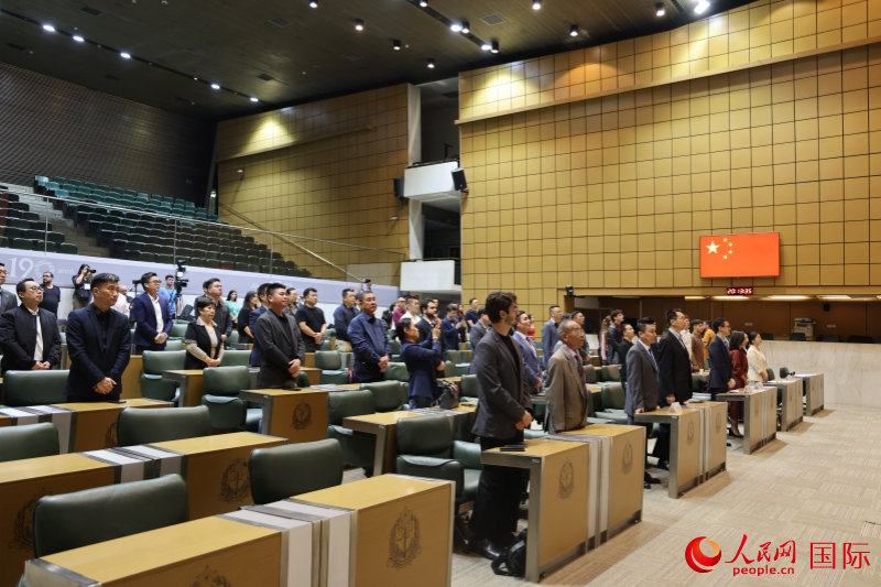 当地时间9月19日,纪念中国人民抗日战争暨世界反法西斯战争胜利80周年活动在巴西圣保罗州议会举办。图为活动现场。人民网记者 时元皓摄