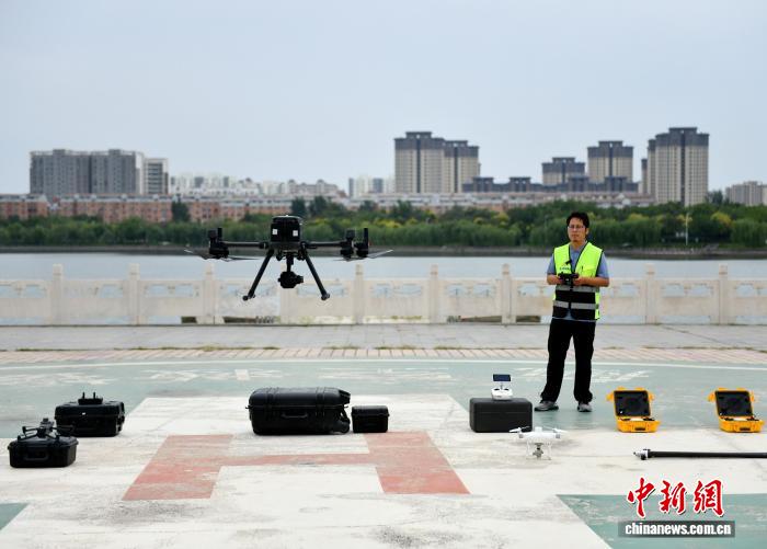 技术人员操控无人机,进行数据采集。沙见龙 摄