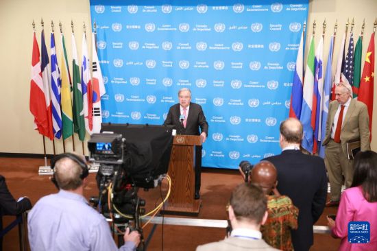 10月9日,联合国秘书长古特雷斯在位于纽约的联合国总部举行的记者会上讲话。新华社记者谢锷摄