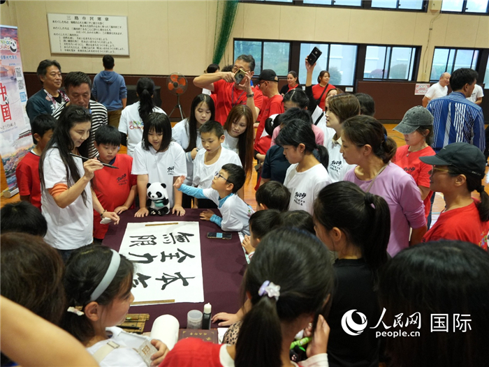 中国书法展示引来众人围观。人民网 许可摄