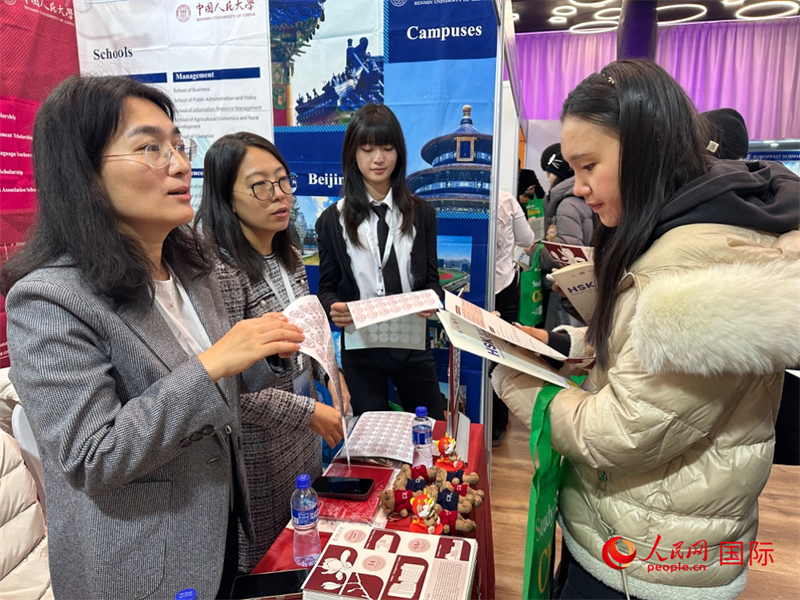 中国高校工作人员在现场为蒙古国学生提供咨询。人民网记者 张朋辉摄
