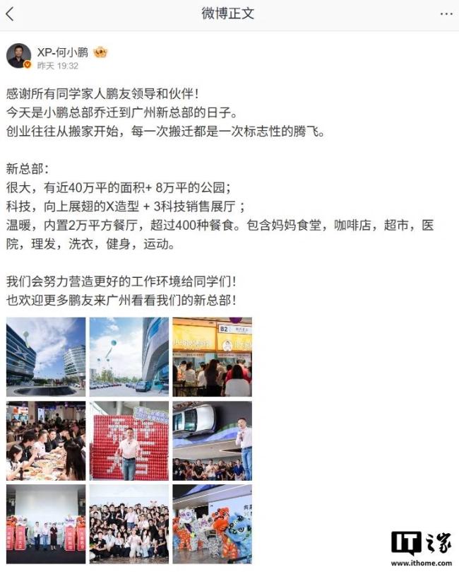 小鹏汽车今日宣布新总部在广州正式启用,标志着公司进入新的发展阶段。小鹏汽车董事长何小鹏提前一天公布了这一消息。他透露,新总部占地近40万平方米,包括8万平方米的公园。其独特的X造型设计和3个科技销售展厅引人注目。内部设施齐全,设有2万平方米的餐厅,提供超过400种餐食选择,还有妈妈食堂、咖啡店、超市、医疗中心、理发店、洗衣房、健身房及运动场所。