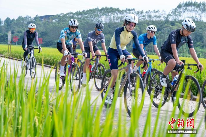 广西梧州稻浪金黄 骑行队伍穿梭享丰景
