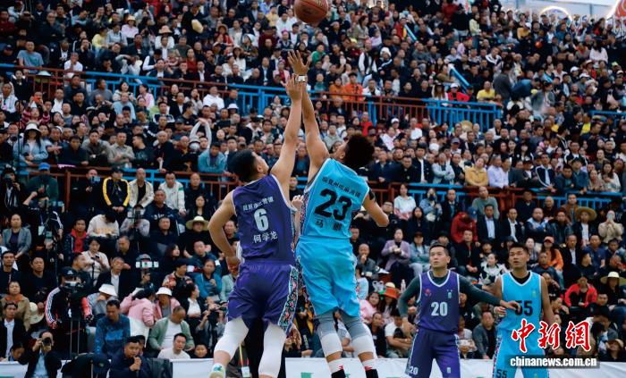 由多民族队员组成的甘肃临夏州篮球队,在篮球比赛中,携手拼搏。(资料图)临夏州体育局供图