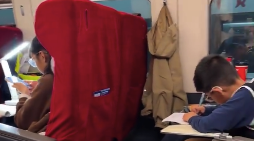 江苏的卷具象化了!江苏春假小孩带台灯高铁上写作业