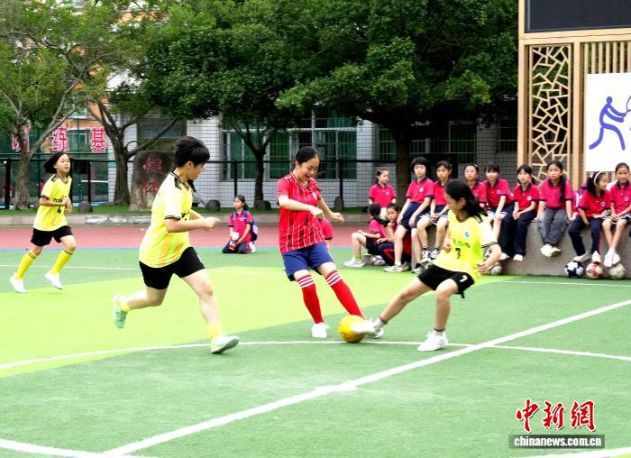 中新网福建永定4月16日电 (熊川 黄秋萍)每天下午四点四十五分,福建省龙岩市永定区龙凤小学足球场上活力涌动。作为全国青少年校园足球特色学校,该校深耕校园足球、以球育人、以体育心。伴着“闽超”赛事热潮,该校学生的足球梦想愈发坚定,渴望以绿茵为舞台,展现土楼少年风采,让客家足球活力传遍八闽大地。