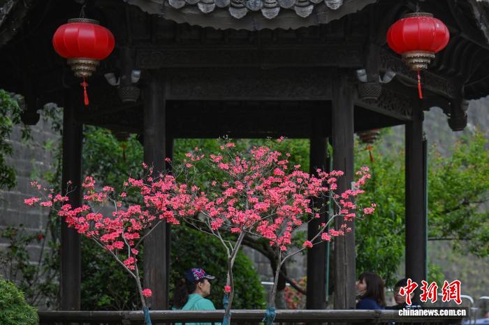 4月17日,江苏南京,明城墙下杜鹃花进入盛花期,红色、粉色的花朵层层叠叠,与古朴的城墙、建筑相互映衬,让人流连忘返。中新社记者 泱波 摄