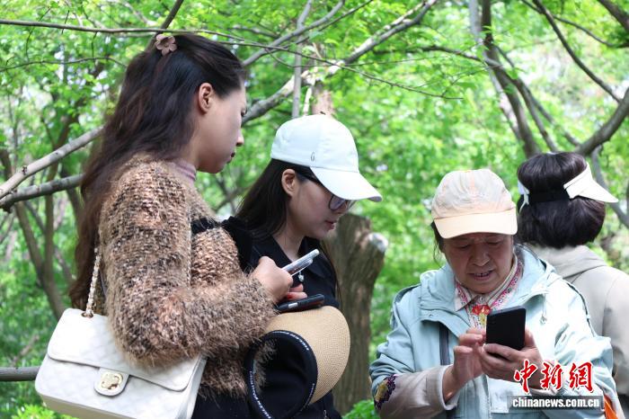 4月17日,山东济南,市民在沟通相亲人士的信息。周艺伟 摄