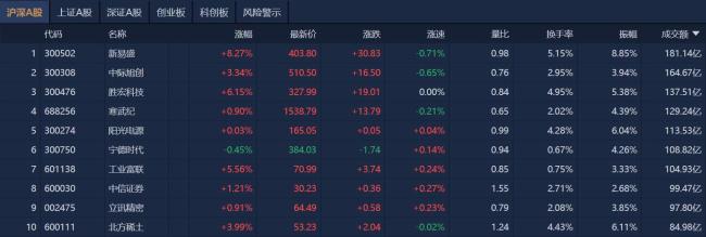 沪指早间震荡走强,再创十年新高,逼近4000点。截至早盘收盘,沪指涨1.04%,深成指涨1.26%,创业板指涨1.54%。盘面上热点快速轮动,算力硬件方向表现强势,东田微触及20cm涨停,新易盛、汇绿生态、中际旭创盘中均创历史新高