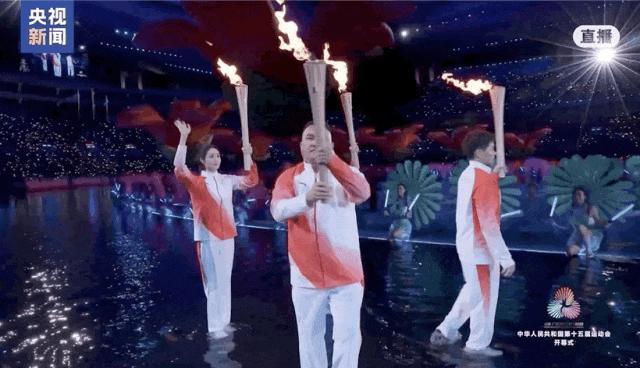 昨晚,第十五届全国运动会在广东奥林匹克体育中心体育场盛大开幕。主火炬点燃仪式上,粤港澳三地的火炬手手持圣火,踏浪而来。其中,“全国道德模范”赖宣治是唯一非运动员火炬手