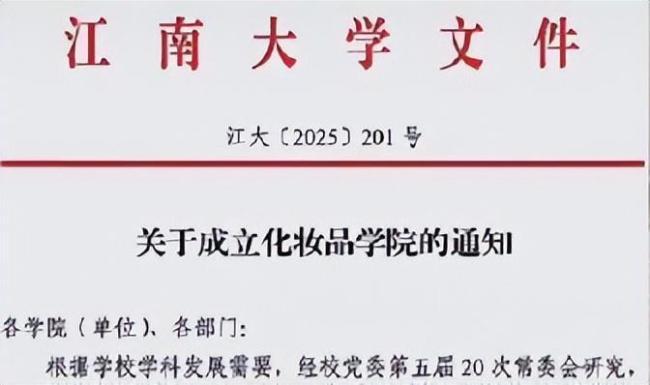 近日,有消息称江南大学成立了化妆品学院,引发广泛关注。9月28日,江南大学党委宣传部和化学与材料工程学院确认了这一消息。学校此前并无专门的化妆品专业,但已有相关研究方向