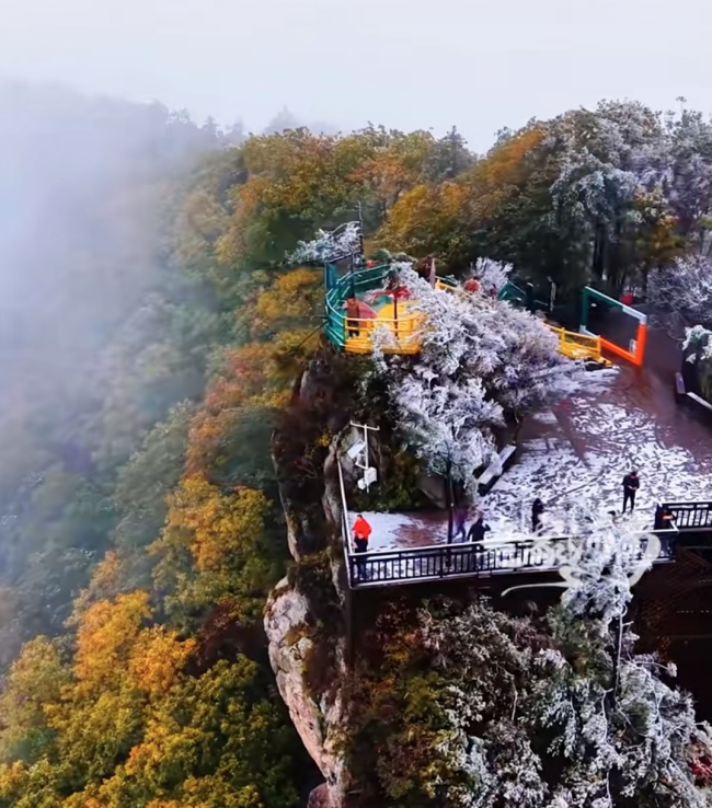 一位摄影师在河南老界岭景区拍摄到了奇妙景观,被称为“一米之隔,两个季节”。很多网友感叹这是中国南北气候分界线的具象化