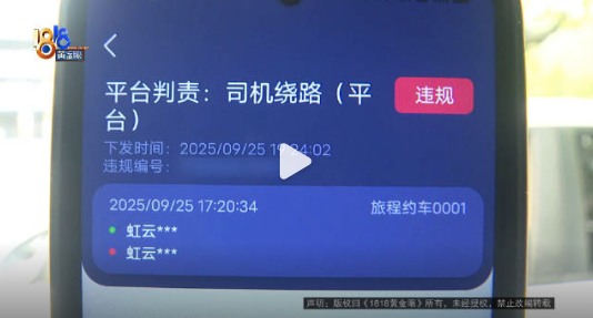 彭师傅反映,前段时间接了笔网约车订单,乘客切换了目的地,结果导航定位出了问题,他被平台判定为绕路......